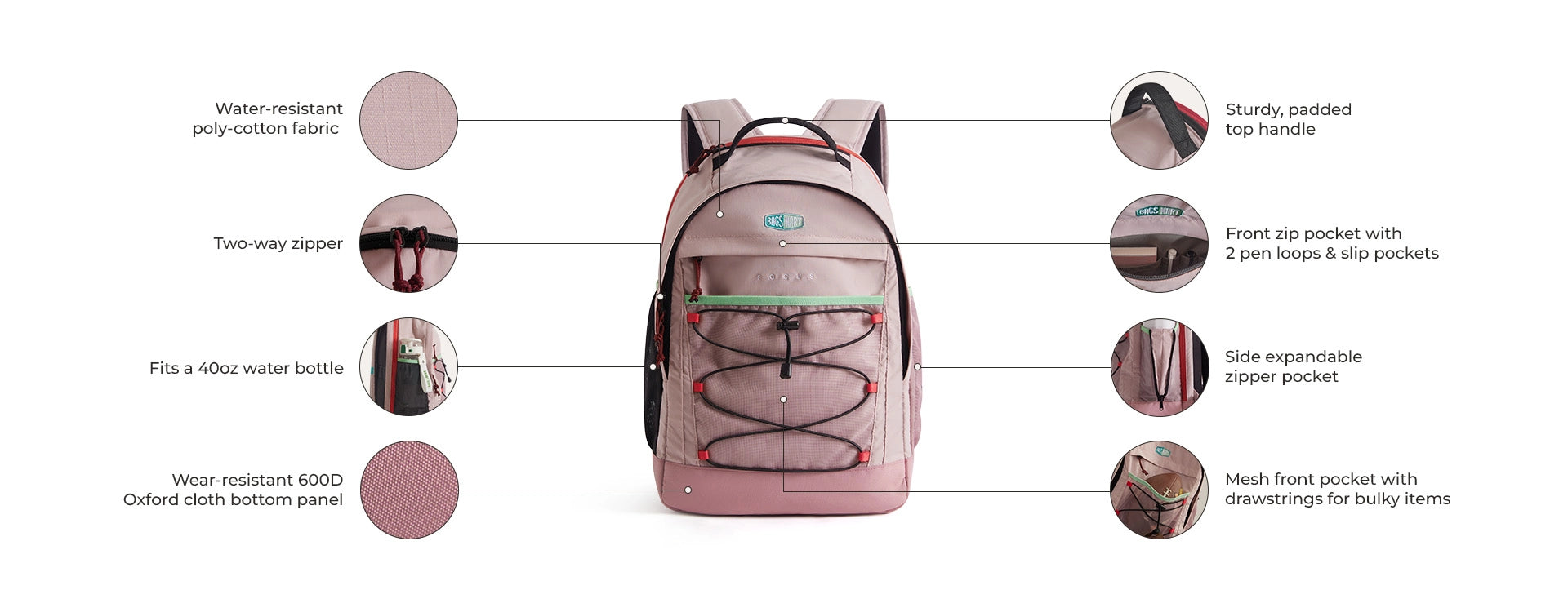 Multiple pockets and compartments offer ample storage for school supplies, tech accessories, and more, keeping everything organized and accessible for class and study.