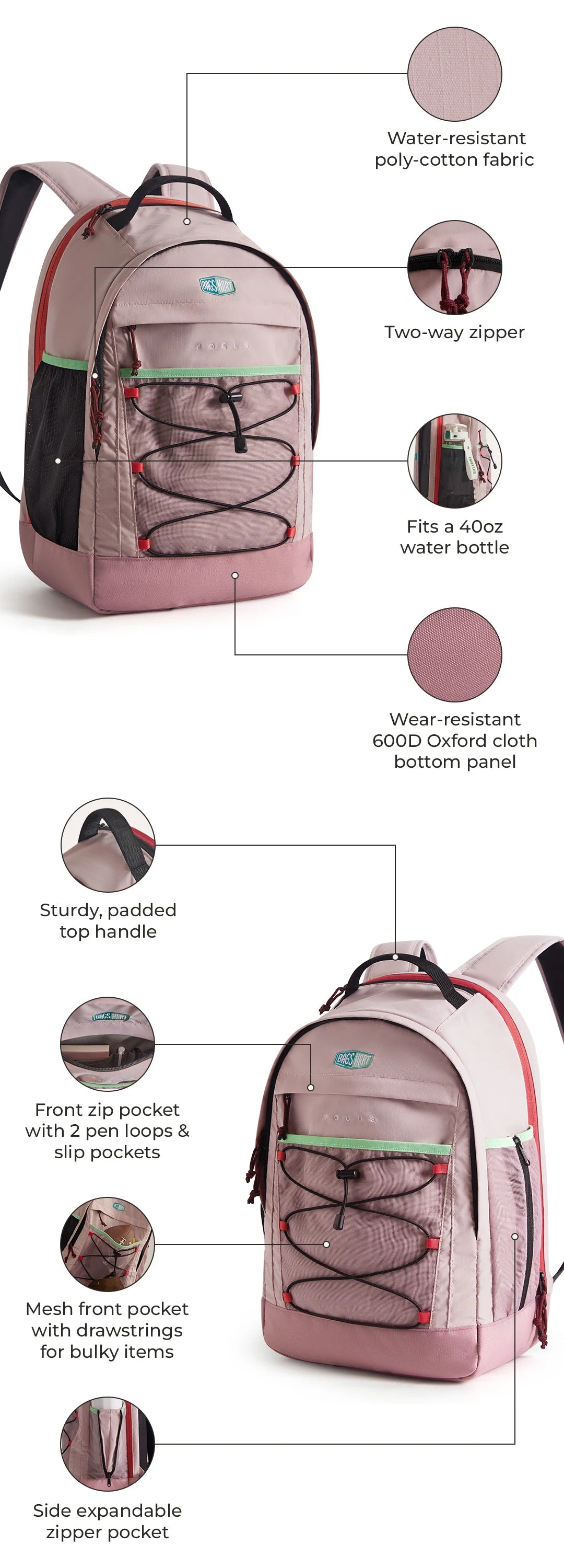 Built to brave the hustle of campus life, this backpack features soft poly-cotton fabric and a tough 600D Oxford cloth bottom. Water-resistant and durable, it's ready to take on whatever your day throws at it!