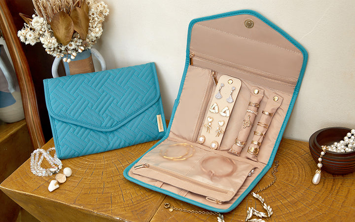 - STYLISH DESIGN: Its sophisticated design and eco-friendly fabrics make it a stylish choice for organizing and protecting your jewelry and the jewelry organizer features quilted patterns on its exterior, adding a touch of luxury and visual appeal to its design.