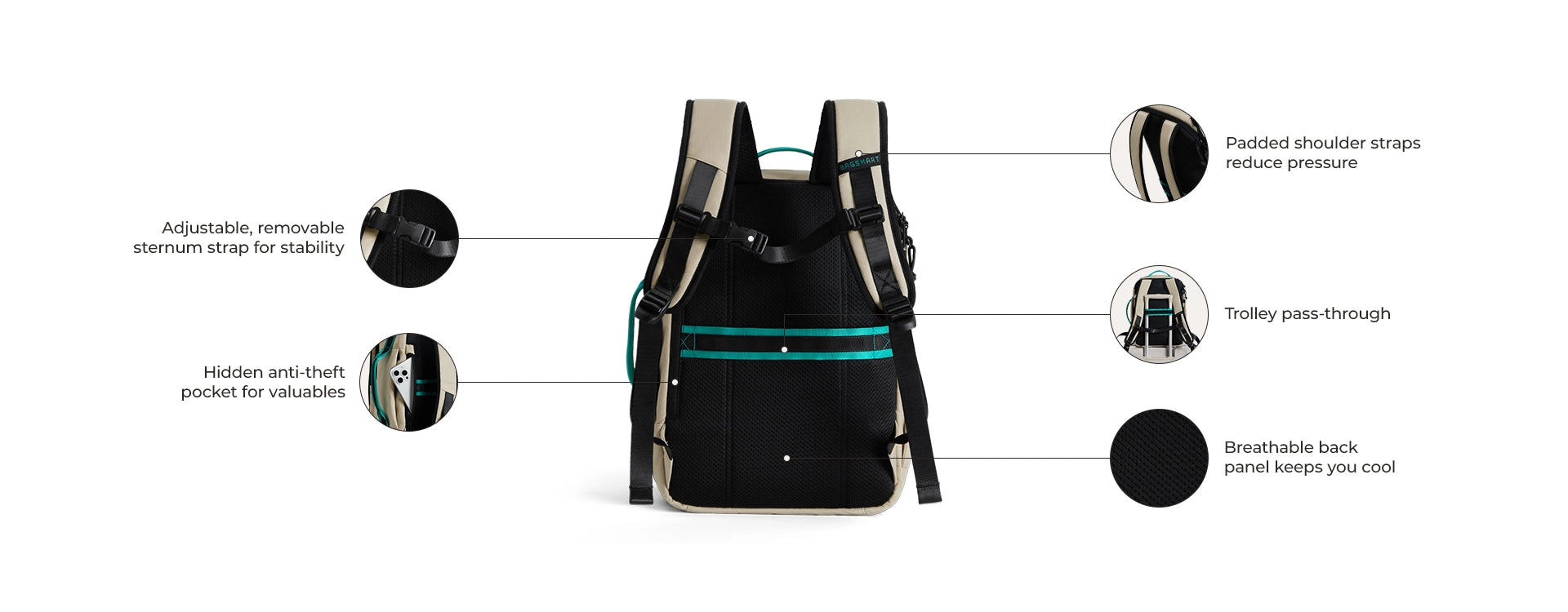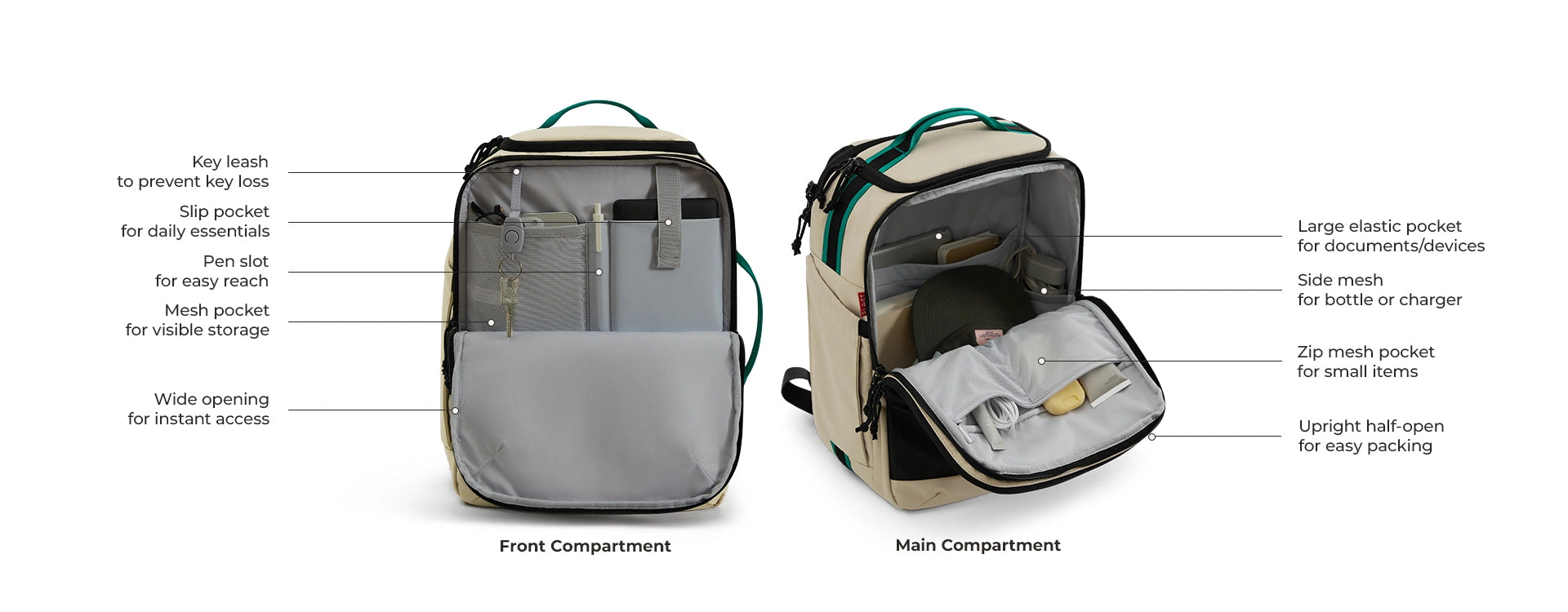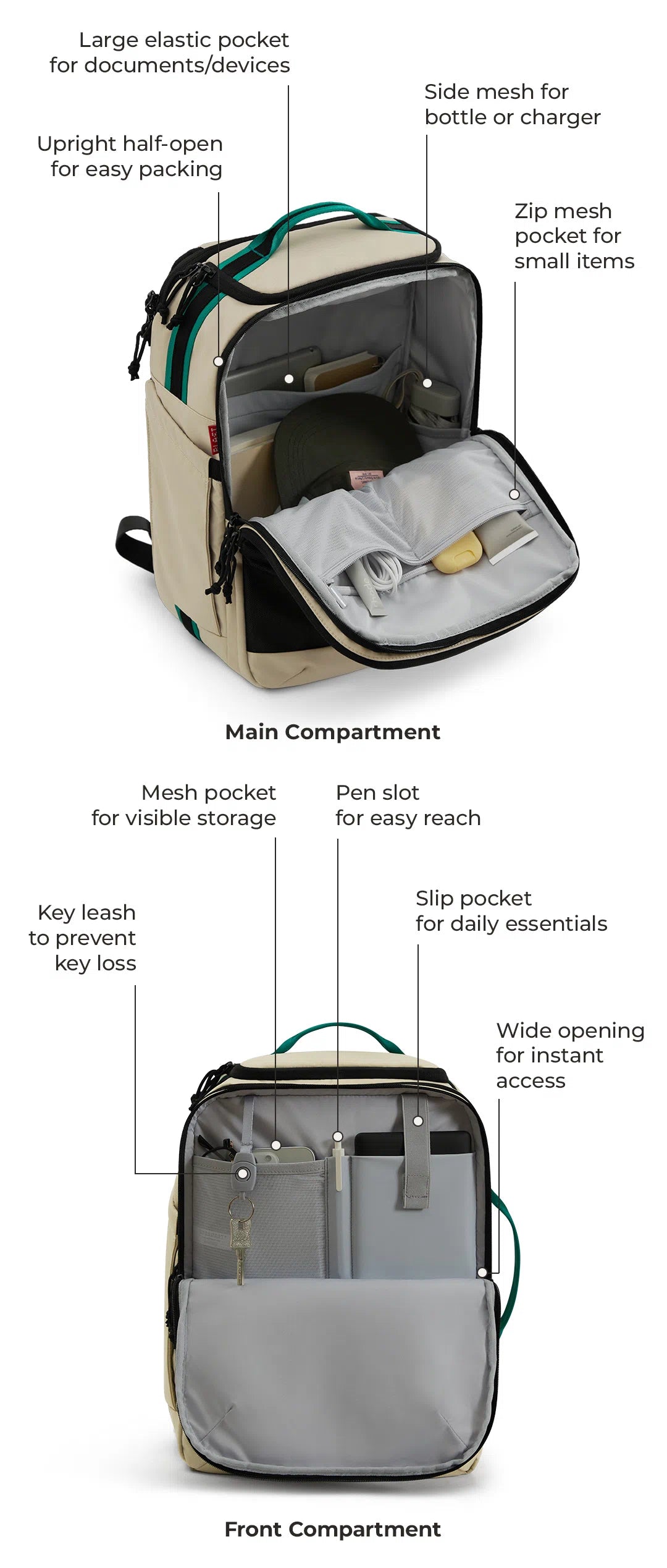 - Commute-ready 22L, airline-approved for 1–2 day trips.