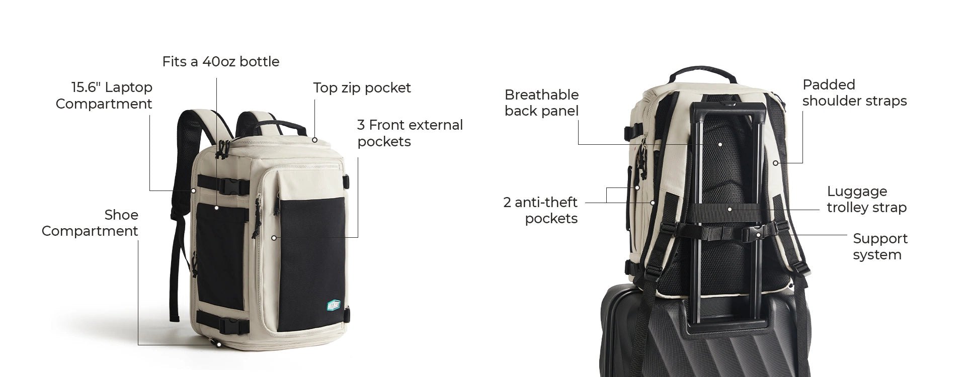 Multiple compartments and pockets pair with the cubes to maximize the backpack’s storage space while keeping everything in order. Say goodbye to rummaging-this solution saves time, effort, and extra costs, so you can explore more and stress less.