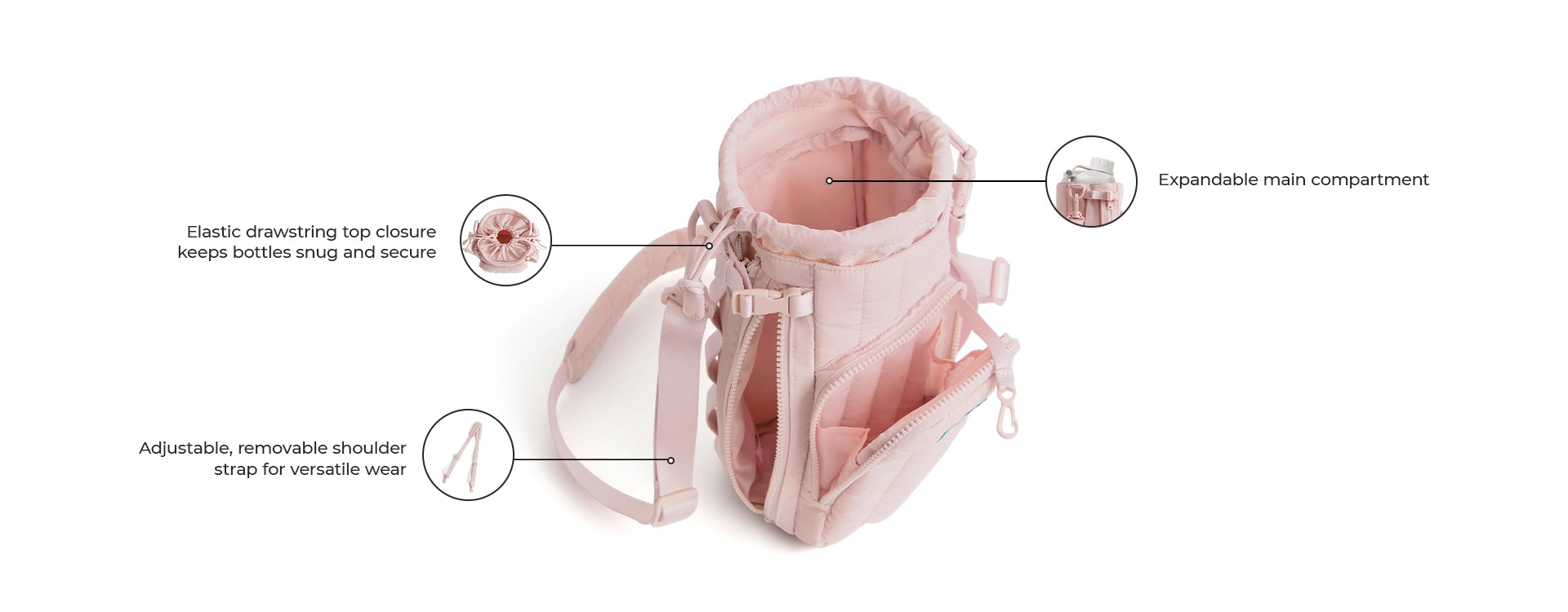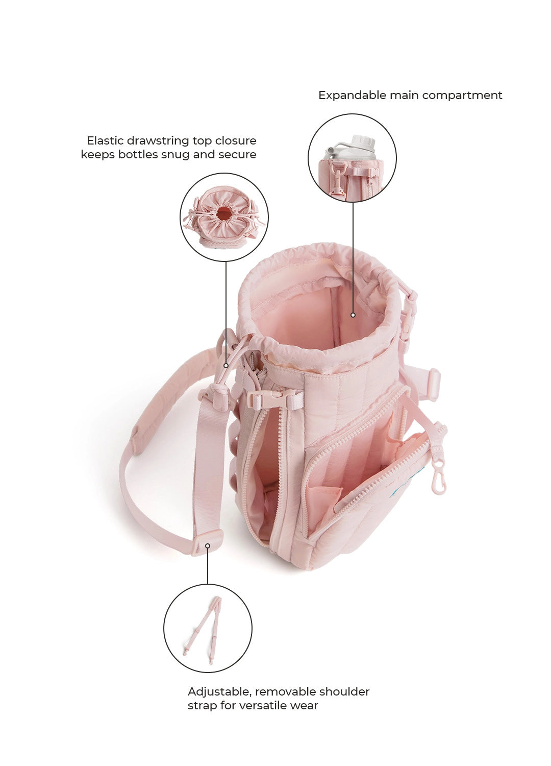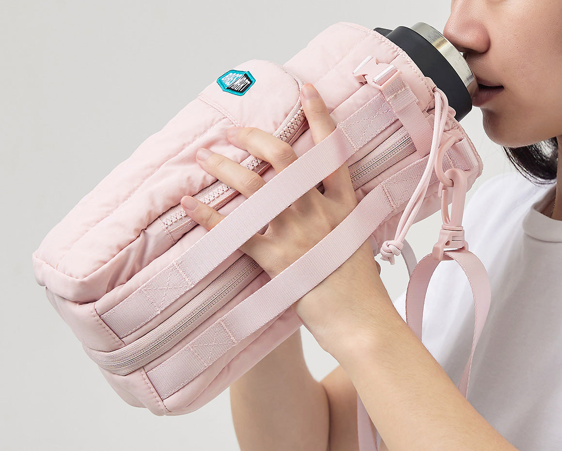 Stay refreshed without the fuss. Ideal for both treks and travels, this versatile water sling features an expandable design that fits bottles from 32oz to over 64oz, accommodating various shapes and sizes, including handled cups. The spacious compartments and secure pockets let you pack all of your essentials with ease, including a dedicated space to safely store cash, cards, and keys. Made from fluffy, waterproof fabric, this piece was designed for durability—no matter how you wear it.