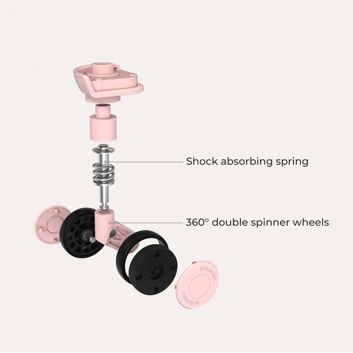GlideTech Wheels engineered for smooth, stable travel with shock-absorbing technology and 360-degree rotation to keep your ride smooth and stable, even on bumpy roads. Upgraded impact-resistant wheel seat cover adds extra protection, ensuring both the luggage and your belongings stay safe from bumps along the way.