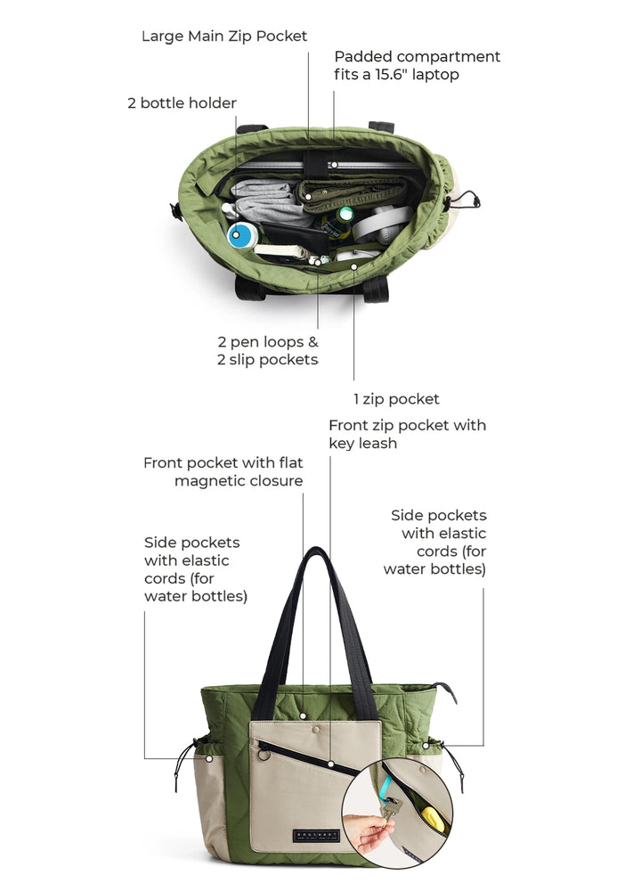Our newest tote is designed to adapt to your ever-changing escapades. From shopping at the market to exploring museums, the Paz (Vega) Tote keeps your necessities secure and accessible. It features a smart, space-saving design crafted from an elevated fabric that is slightly padded with quilted detail to protect your belongings. This carry-all tote is the travel companion you’ll always want by your side.