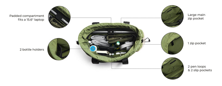 Dedicated laptop compartment fits up to 15.6-inch devices, providing extra protection and convenience.